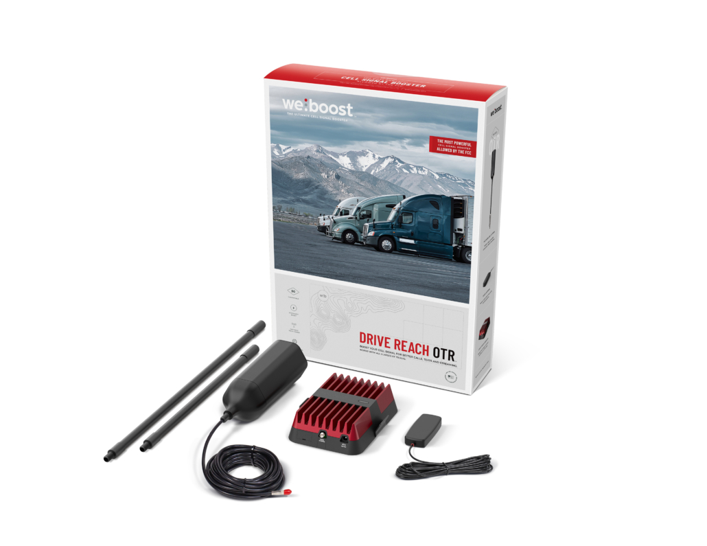 The Drive Reach OTR is our most powerful in-vehicle truck cell phone signal booster certified in the US, with Wilson Electronics* ruggedized, all weather OTR Truck Omni Directional Antenna for maximum connection range and a 60% larger service range than the other boosters out there. The Drive Reach OTR boosts voice and data with max FCC allowed 50 dB system gain, enhancing all available network signals, up to 32x. Drivers get fewer lost connections and dead zones, better audio quality, faster data uploads and downloads with this premier signal booster.