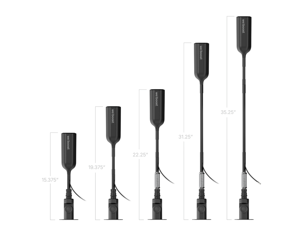 • Outside antenna and masts offer configurations from 14 to 35.5 inches.