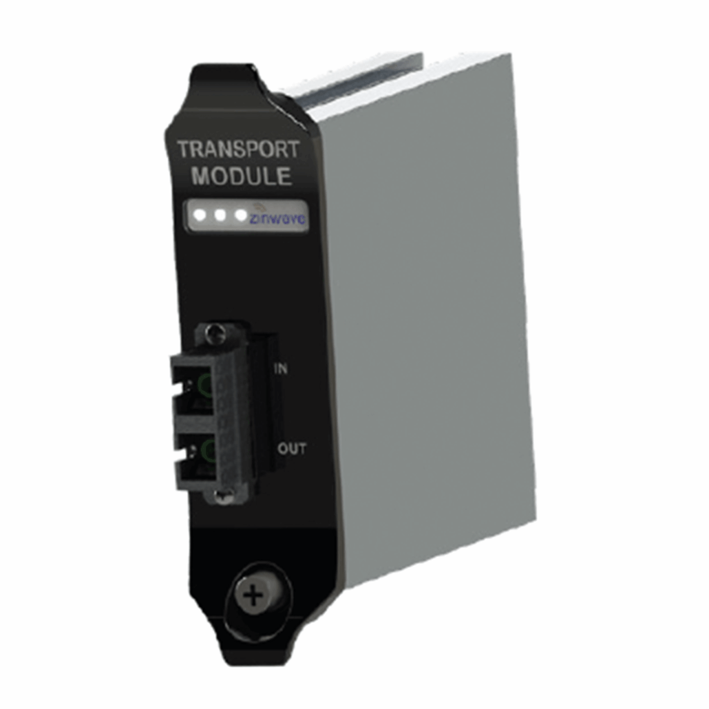 A fiber transport link is created by inserting the Transport Module in the front of the centralized Hub chassis and in the rear of the remote Hub chassis. Up to eight Transport Modules are easily fitted into the centralized Hub unit, feeding up to eight separate remote locations.